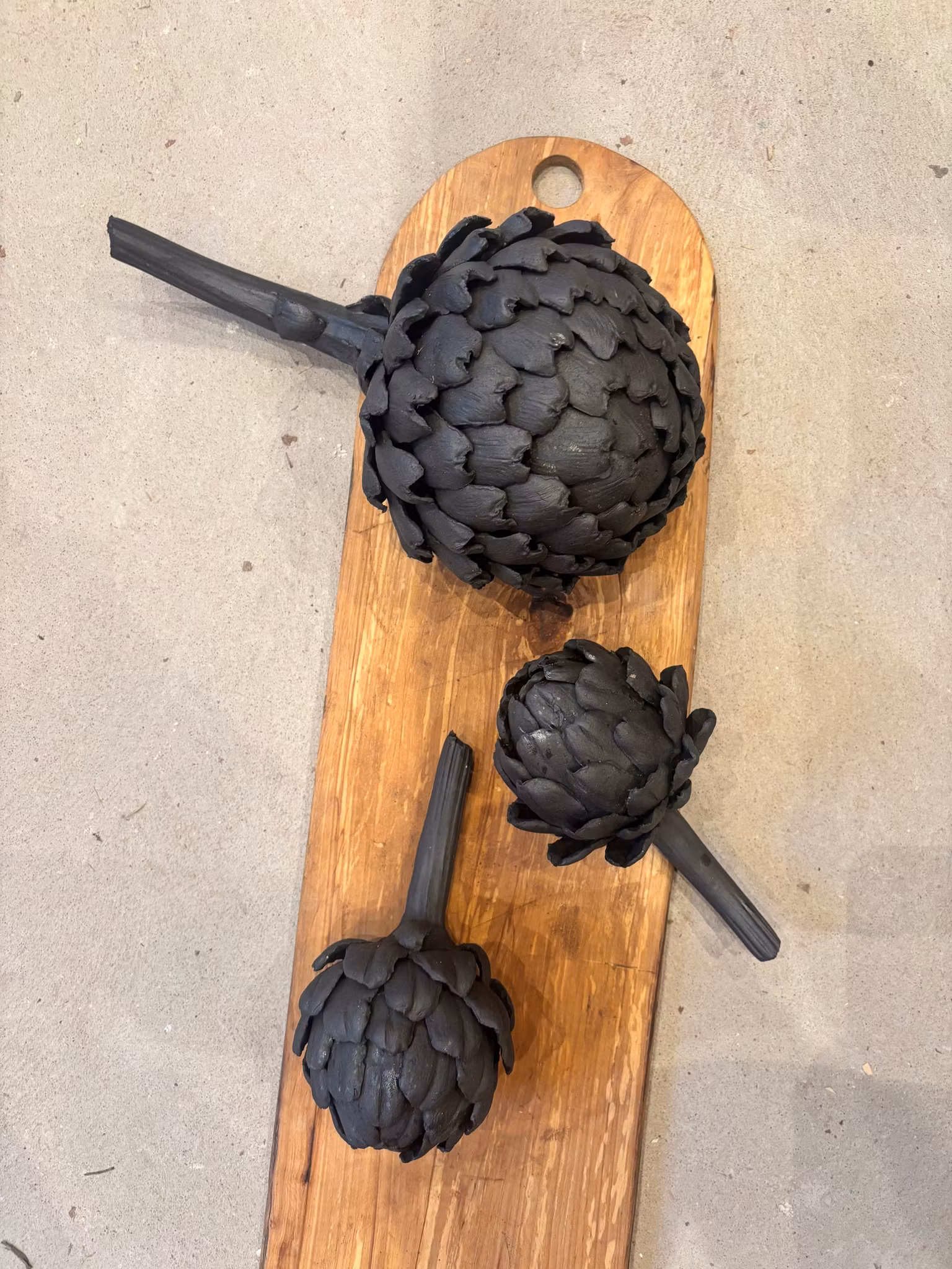 Kronärtskocka i svart stengodslera ca 20 cm lång,liknande storlek som en ”riktig”